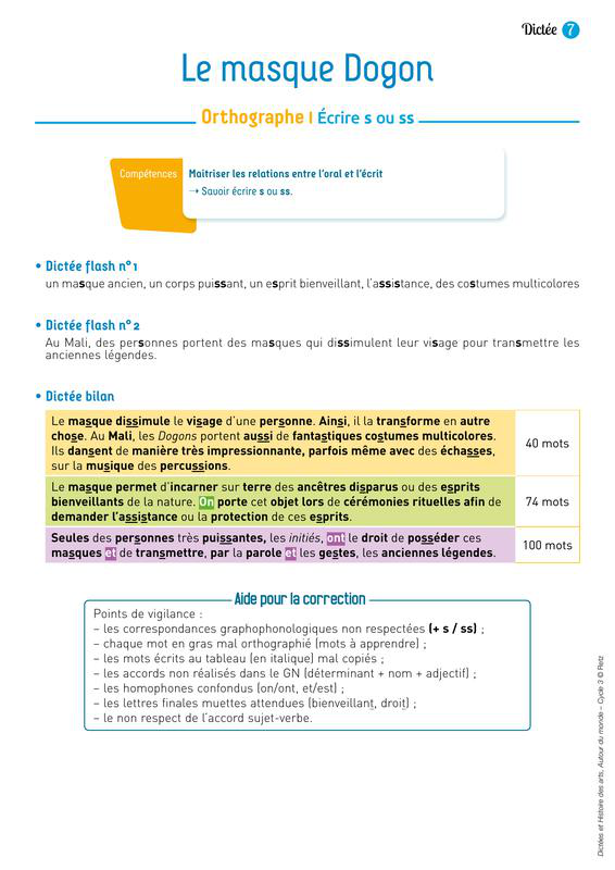 S7 Le Masque Dogon Dictée Dif
